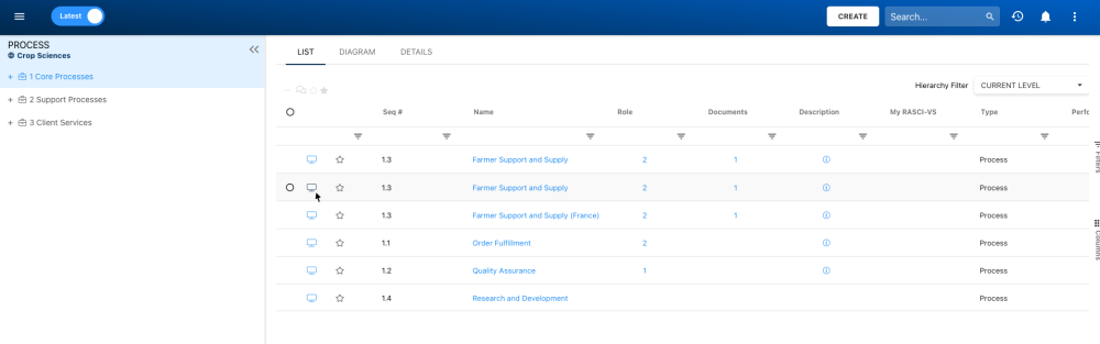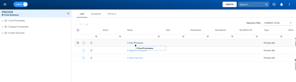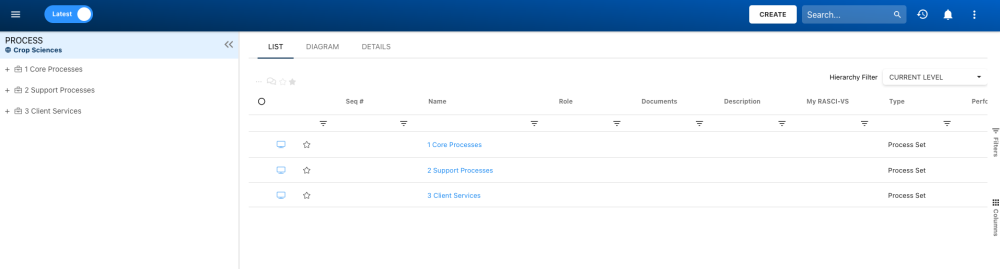 3. By default, you will be directed to List view in the Process module (as seen below).