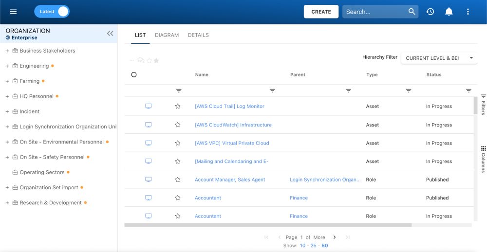 - You will be directed to List View, displaying Org Units, Resources, Roles, and Assets.