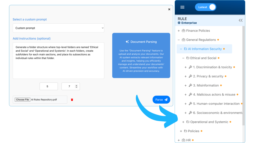 Users can now directly parse their regulatory files within the Rule and Control modules, seamlessly transforming the content into actionable EPC objects.