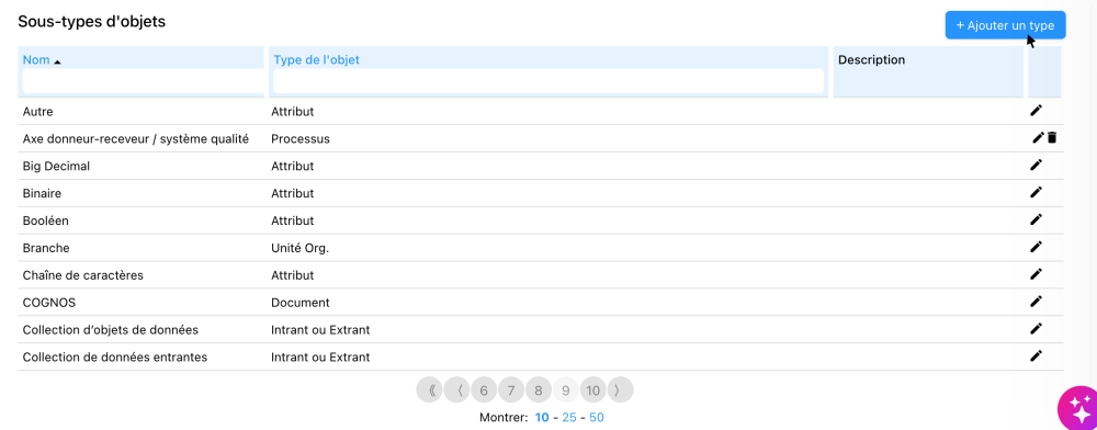 Les administrateurs peuvent personnaliser les noms des sous-types et spécifier quels sous-types s’appliquent à chaque type d’objet. EPC est livré avec une liste par défaut de sous-types d’objet que les administrateurs peuvent facilement modifier — en ajoutant de nouveaux sous-types, en éditant ceux existants, ou en supprimant les entrées inutiles.