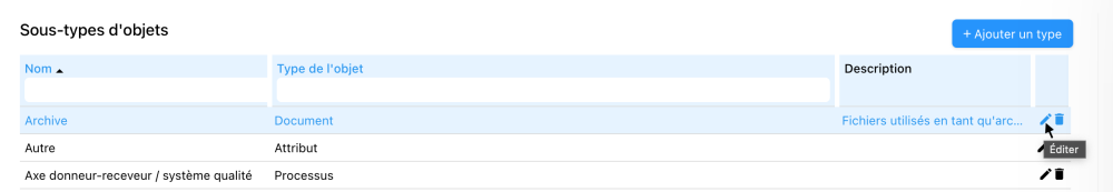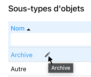 Les utilisateurs peuvent éditer directement en ligne le nom du sous-type dans la liste.