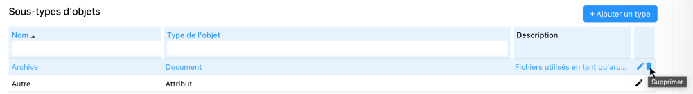 Cliquez sur le bouton correspondant pour supprimer un sous-type.