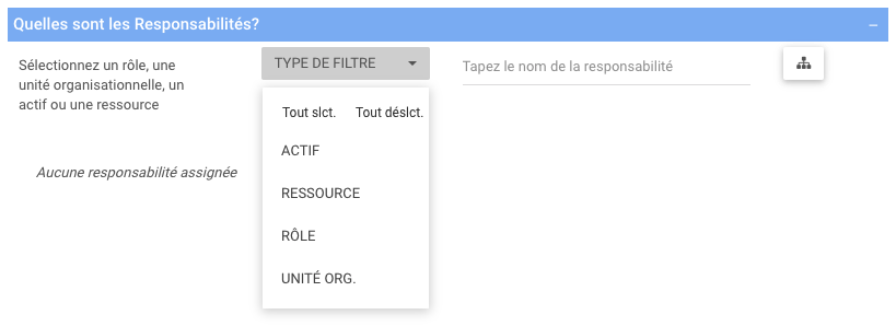 - Un sélecteur déroulant sous chaque partie prenante ajoutée.