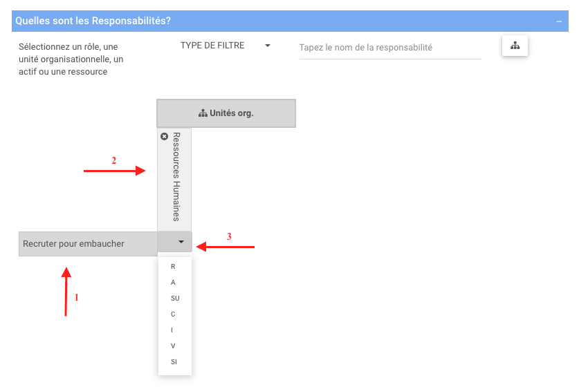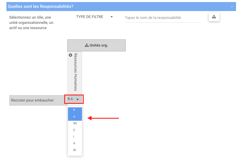 Sélectionnez une ou plusieurs valeurs RASCI-VS. (les ressources humaines sont l’autorité et responsable de ce processus).
