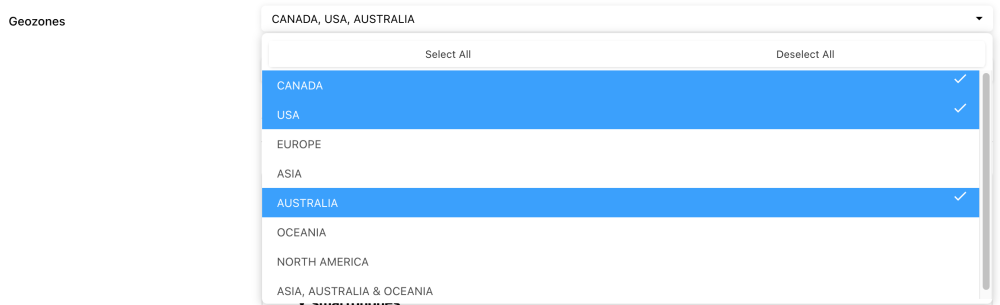 Sélectionnez une ou plusieurs valeurs dans une liste prédéfinie, ou utilisez “Sélectionner tout” pour tout choisir. Cliquez sur “Désélectionner tout” pour désélectionner toutes les options.