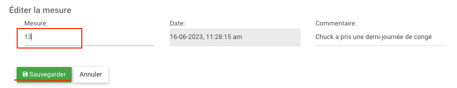 2. Vous pourrez éditer la mesure. Cliquez sur “Sauvegarder” lorsque vous avez terminé.