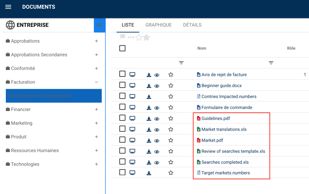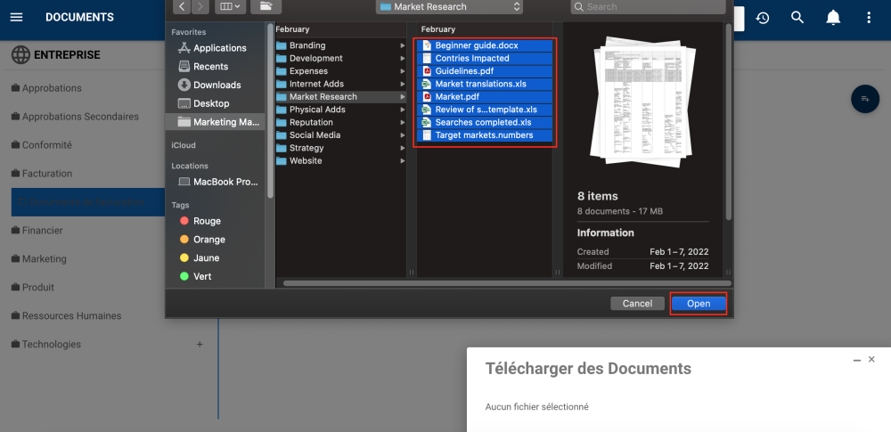 2. Sélectionnez les documents à télécharger dans ce dossier.