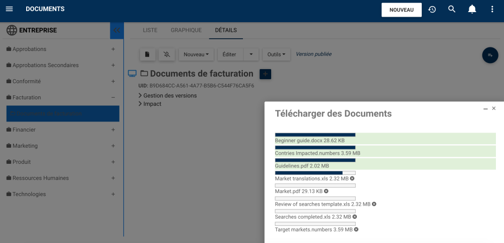 Le téléchargement et la création de nouveaux documents sont plus rapides grâce à la fonction de téléchargement de documents en masse. En cliquant sur un seul bouton, les utilisateurs peuvent télécharger plusieurs documents à la fois.