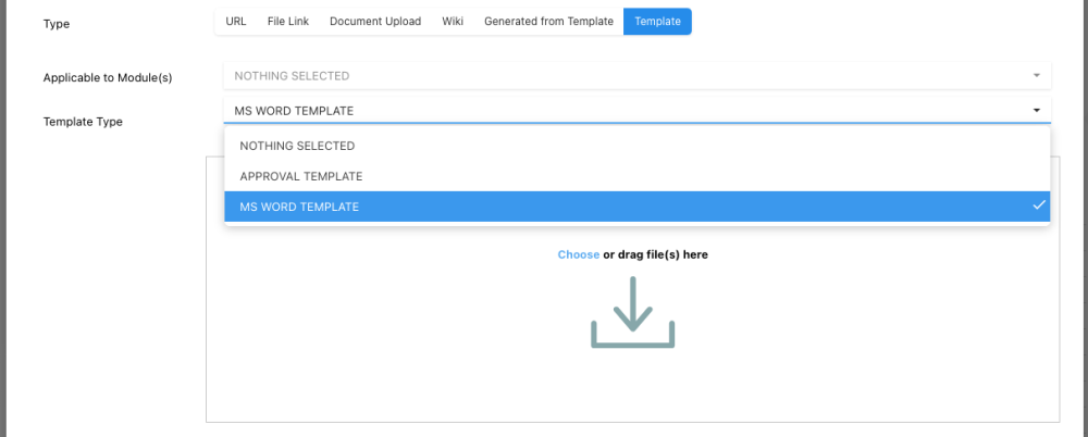 - In the ‘Template Type’ dropdown, select ‘MS Word Template’