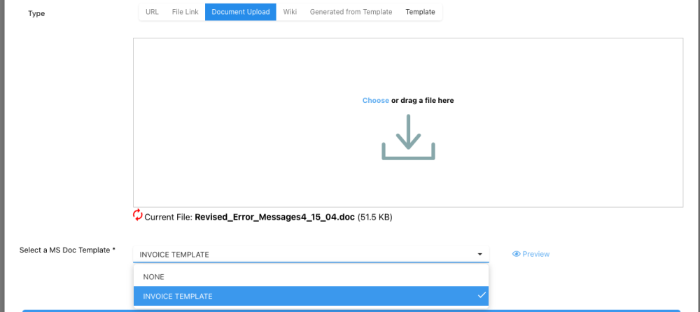 - Access the Select a MS Doc Template dropdown.