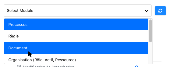 Les utilisateurs peuvent filtrer les recommandations par types d’objets en utilisant le menu déroulant Sélectionner le module :