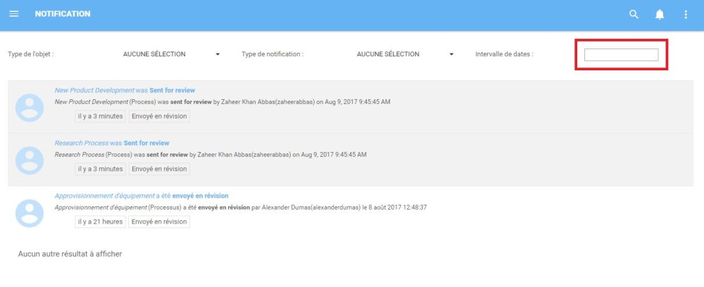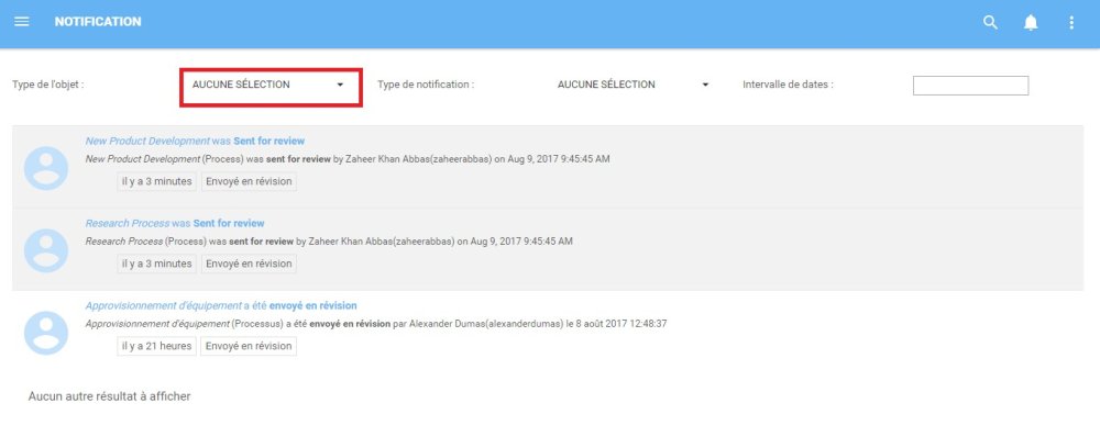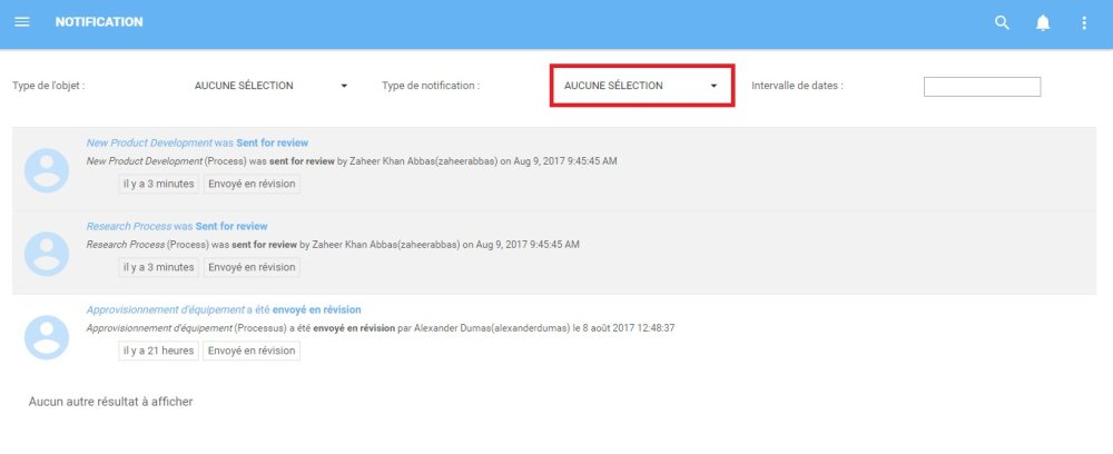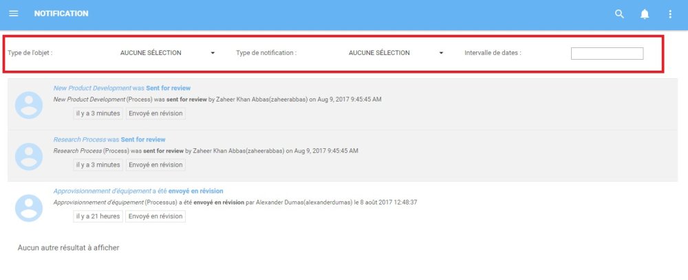 Les utilisateurs peuvent filtrer leurs notifications pour vous aider à trouver l’item désiré. L’utilisation des filtres dans la fenêtre des notifications permettra aux utilisateurs de trouver rapidement et efficacement l’item qu’ils recherchent.