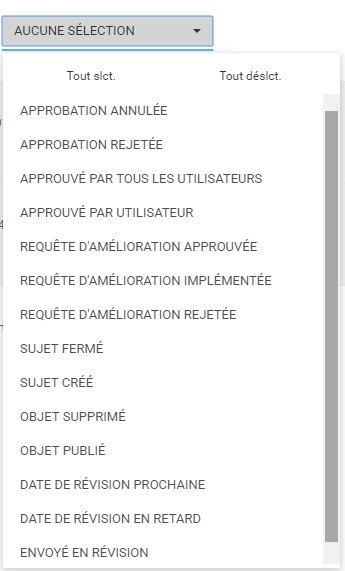 4. Sélectionnez le type de notification souhaité. Les utilisateurs peuvent sélectionner un de plusieurs types d’objets différents simultanément