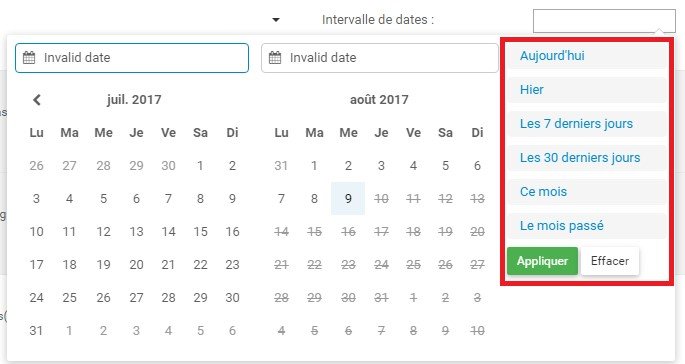 Les utilisateurs peuvent également sélectionner les plages de dates par défaut: