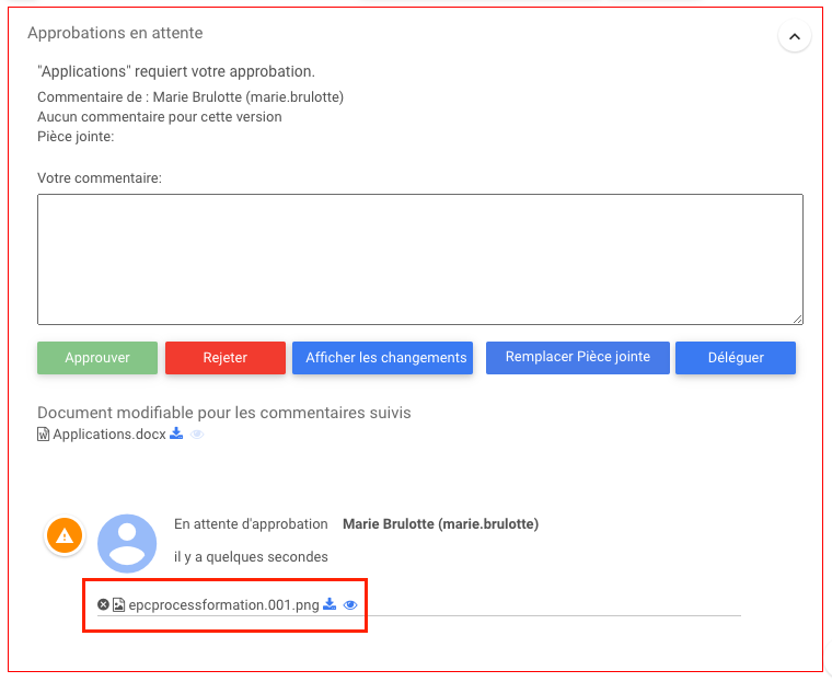 4. Le fichier apparaîtra au bas de l’approbation en attente