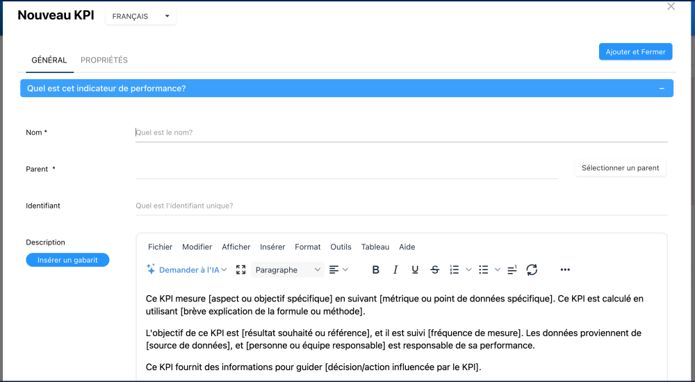 Les organisations peuvent désormais définir des gabarits par défaut pour les nouveaux objectifs, KPI, KRI, KCI et règles, en plus des options déjà disponibles pour les documents, objets de flux et processus.