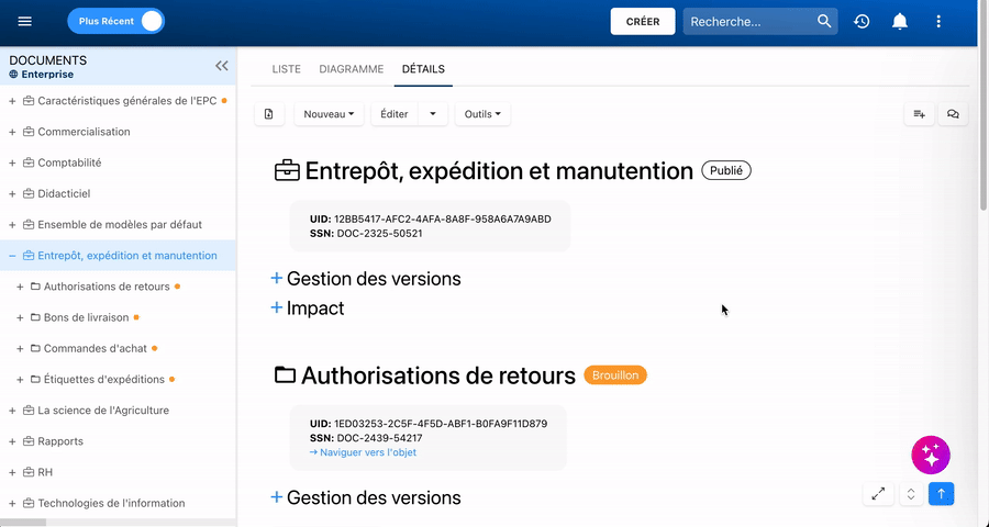 En cliquant sur un élément dans la table des matières, les utilisateurs peuvent instantanément accéder à ce sous-élément dans la vue Détails.