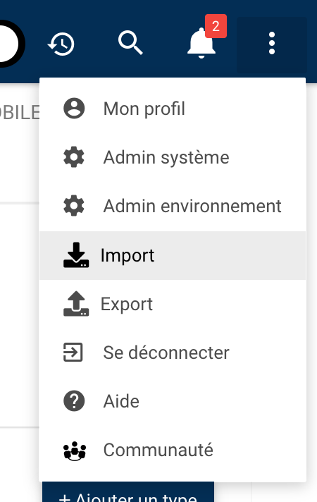 1. Dans le menu EPC (situé dans le coin supérieur droit), cliquez sur Importer.