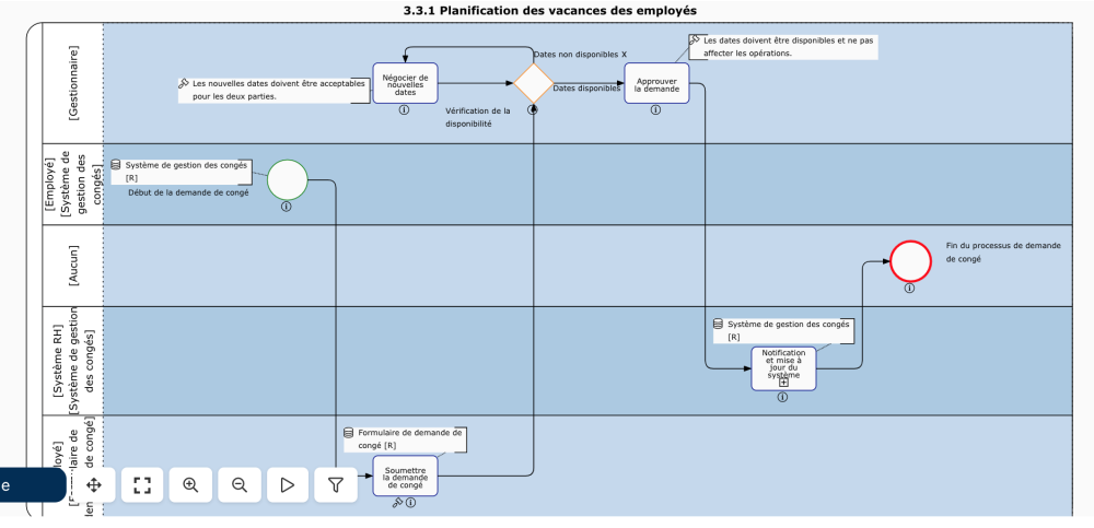 | Processus | Objets de flux et leur description, entrées/sorties, annotations, rôles responsables assignés | |
