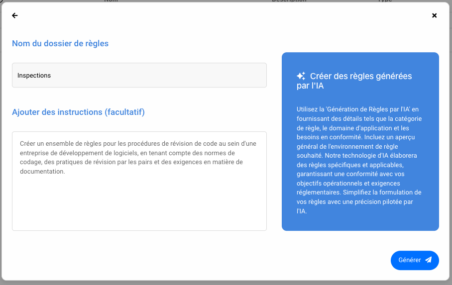 Dans cette section, nous proposons des guides étape par étape pour la génération de processus et d’autres objets, accompagnés d’un journal de génération de données spécifique au module. Ce journal fournit des informations sur les données qui seront créées lorsque vous générez un objet avec l’Intelligence Artificielle.