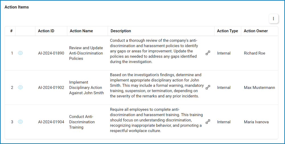 Once the sensitive event has been successfully addressed and resolved—either through immediate containment or the approval of all defined actions —the Head of HR will receive a notification in their Pending Tasks, prompting them to sign off on the resolution.