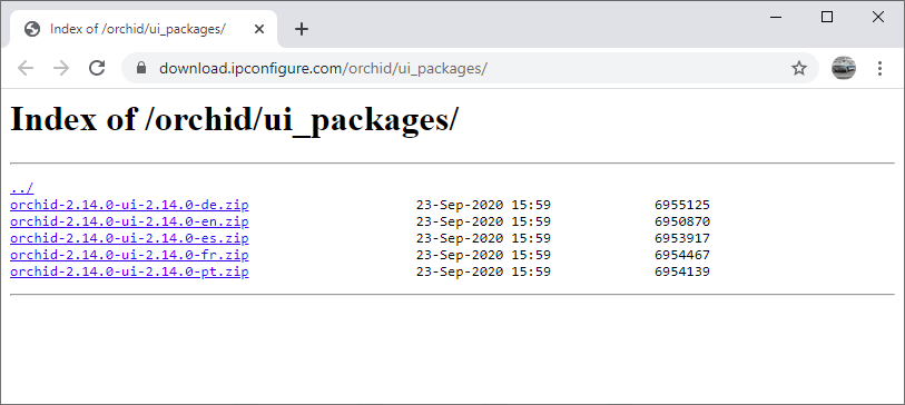 - To view available language files, use your web browser to navigate to the following location: https://download.ipconfigure.com/orchid/ui_packages/