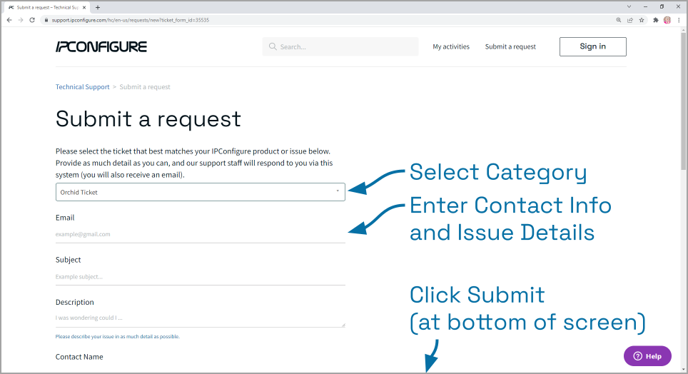 The IPConfigure Technical Support Team will respond to your request as soon as possible.