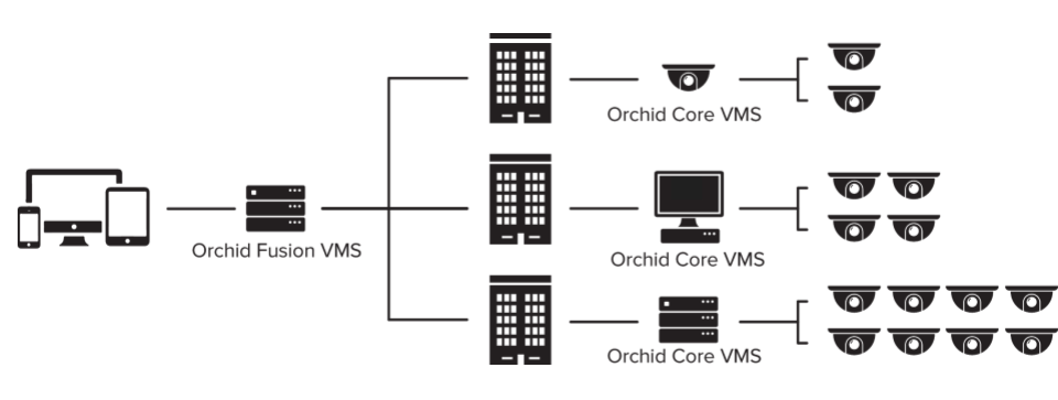 Orchid Fusion VMS and Orchid Hybrid VMS are nearly identical systems. They are both used to manage multiple Orchid Core VMS servers. Orchid Fusion VMS requires you to have one or more Orchid Core VMS