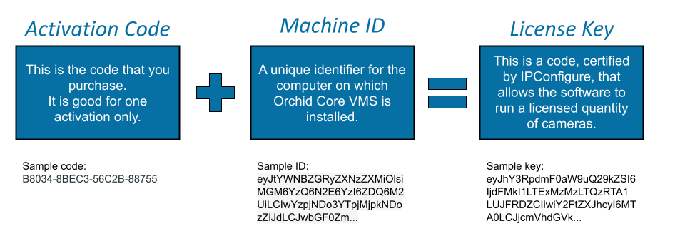 When you purchase a license, you will be given an activation code. As indicated in the diagram below, the activation code is just the starting point in the process of adding a license. This code, after being paired with your Machine ID, will generate a license key. With this quick method, most of the work is done behind the scenes.