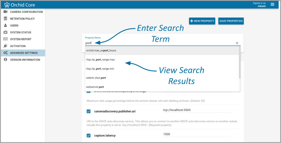 - If the list of results does not contain the property you are looking for, enter a new search term in the Property Name field.