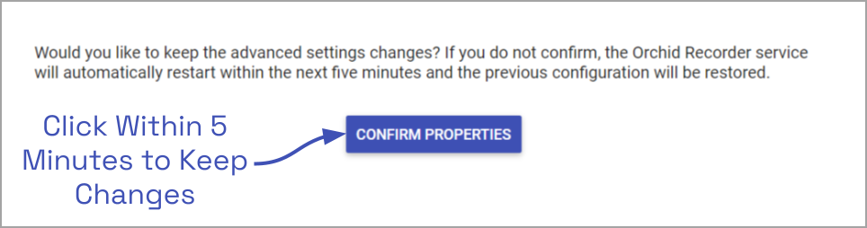 Anytime you make changes to these properties, the Orchid Recorder service must be restarted in order for the changes to take effect. Be sure to follow this procedure completely to ensure changes are saved.