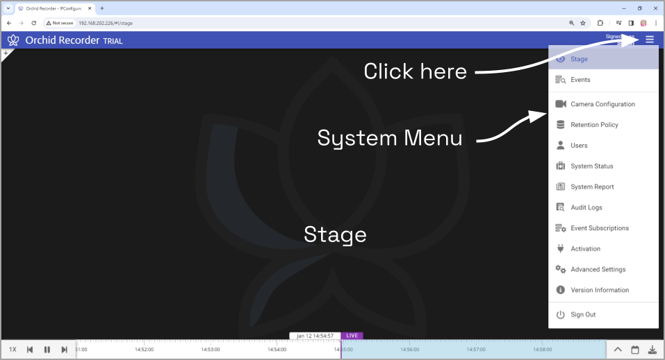 1. To open the System Menu, click on the Hamburger icon in the top-right corner of the screen.