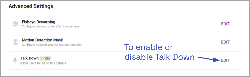 - Then click the Talk Down Edit button to open the Talk Down screen.