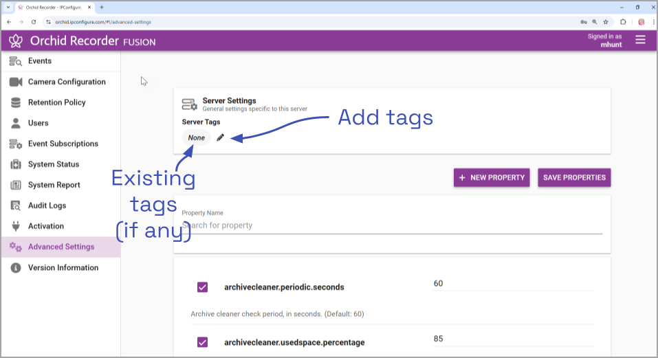 - To add or edit Server Tags, click the Edit pencil to the right of the Server Tags heading at the top of the screen.