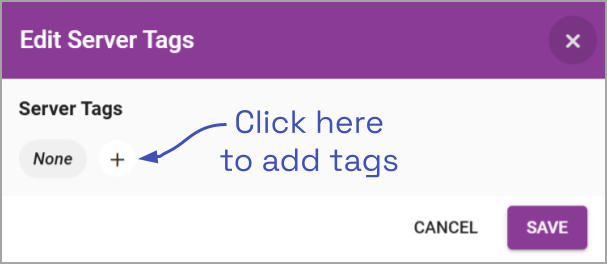 - To remove a tag from the selected server, click the X to the right of the tag (near the top of the dialog).