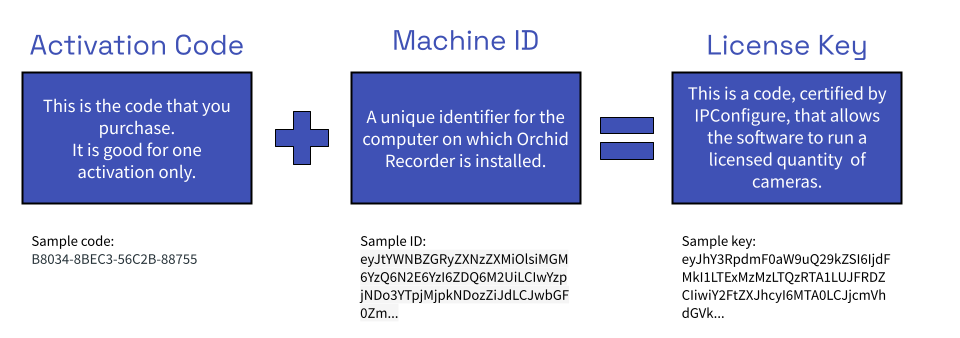 When you purchase a license, you will be given an activation code. As indicated in the diagram below, the activation code is just the starting point in the process of adding a license. This code, after being paired with your Machine ID, will generate a license key. With this quick method, most of the work is done behind the scenes.