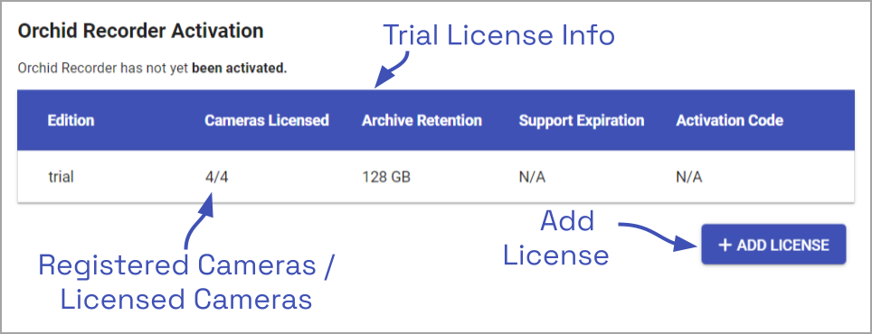 - When the Orchid Recorder Activation screen appears (above), click the Add License button to activate a new license.