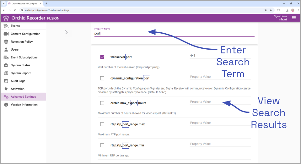 - If the list of results does not contain the property you are looking for, enter a new search term in the Property Name field.