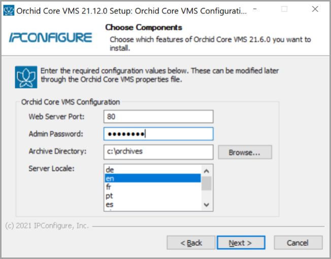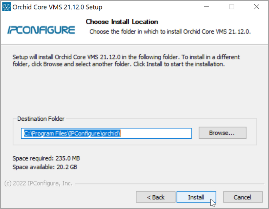 - Download the Orchid Core VMS executable file. You can find the latest version of the Orchid Core VMS on IPConfigure’s website at https://www.ipconfigure.com/products/orchid#download.