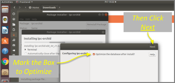 sudo gdebi (_package-name_).deb. For example, if the name of the package is ipc-orchid-x86_64_21.6.0-systemd.deb, type the following command:sudo gdebi ipc-orchid-x86_64_21.6.0-systemd.deb. Then press Enter.