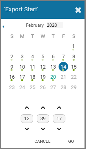 - Select the date and time, then click Go. (You may receive a warning that your selected range exceeds the allowed export duration. For now, proceed to the next step.)