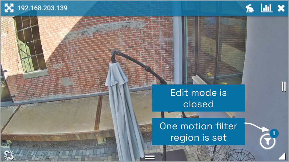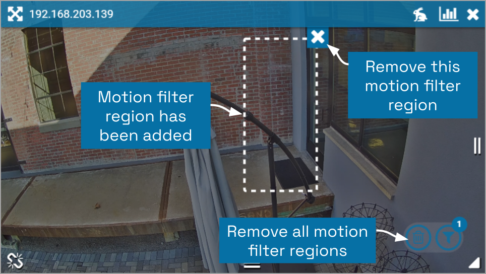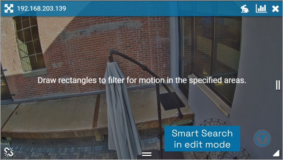 - When you are done adding motion filter regions, click on the Smart Search icon to close editing mode. The Smart Search icon will return to white and will indicate how many motion filter regions have been set up (if any).