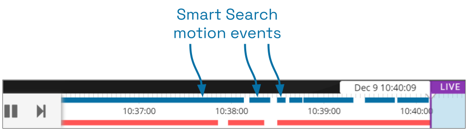 The Smart Search motion events will appear in blue on the Timeline Bar. Refer to the About Motion Events section for additional details.