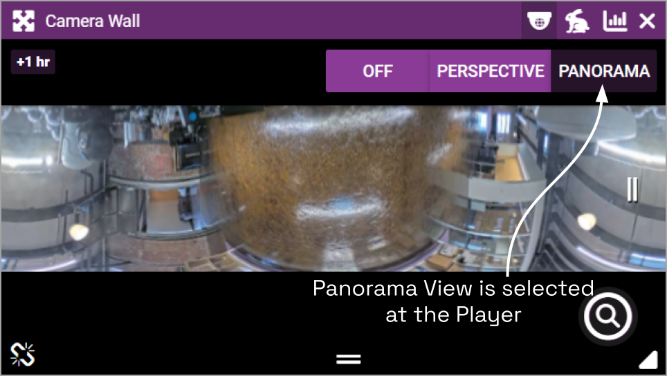 - To view the camera in the Panorama format, click the PANORAMA button on the Dewarping toolbar (as in the image below).
