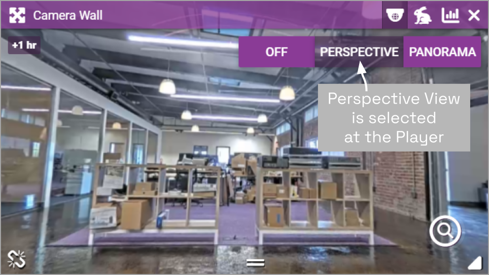 - To view the camera in the Perspective format, click the PERSPECTIVE button on the Dewarping toolbar (as in the image below).