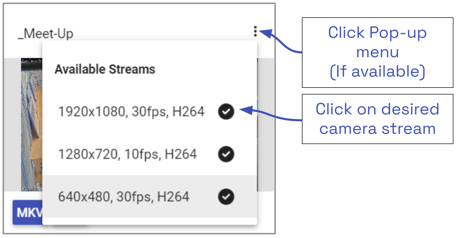 - Click on the pop-up menu, then click on the stream resolution you want to export. (If you don’t select anything, the system will automatically select the highest resolution stream for the export.)