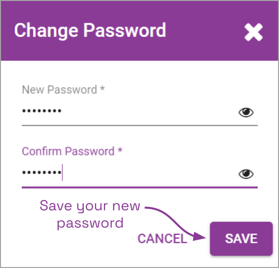 - Type your new password into the New Password field, then enter it again in the Confirm Password field.