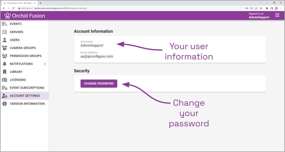 Beginning in version 23.3, you and all of your end-users will each have access to your own Fusion account information. This means that each user will be able to change their own password.