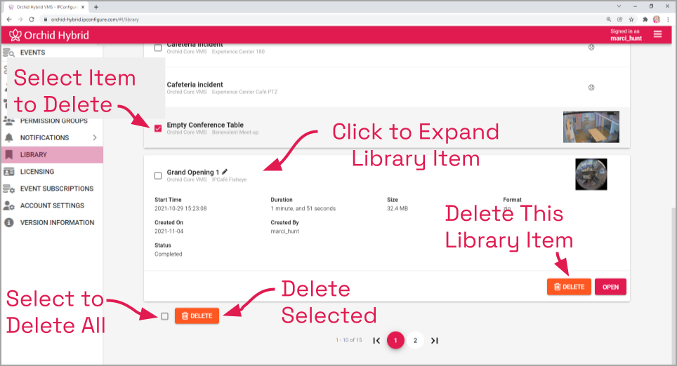 Orchid Fusion/Hybrid VMS offers several ways to delete an item from the Library.