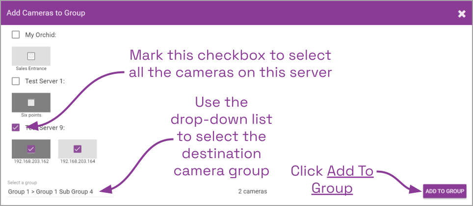 - Click the Add to Group button to complete the Camera Group assignment.